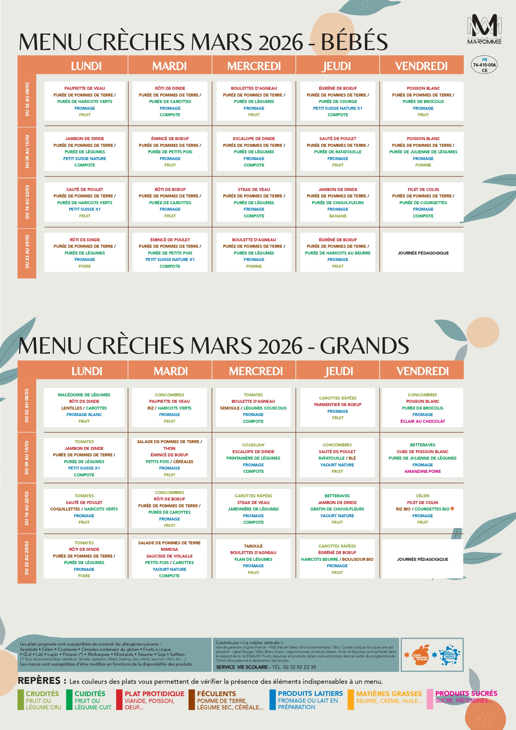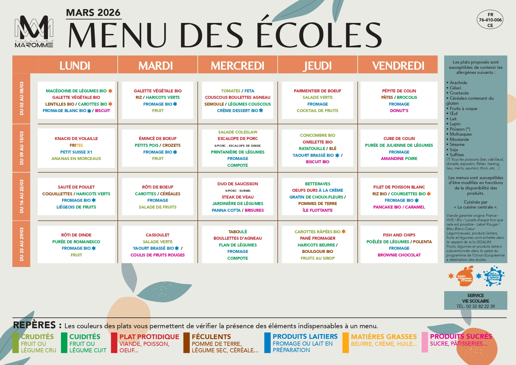 Actualité, Menus des écoles MENU DES ÉCOLES & DES CRÈCHES – MARS 2026 Publié par Ville de Maromme le 26 février 202626 février 2026